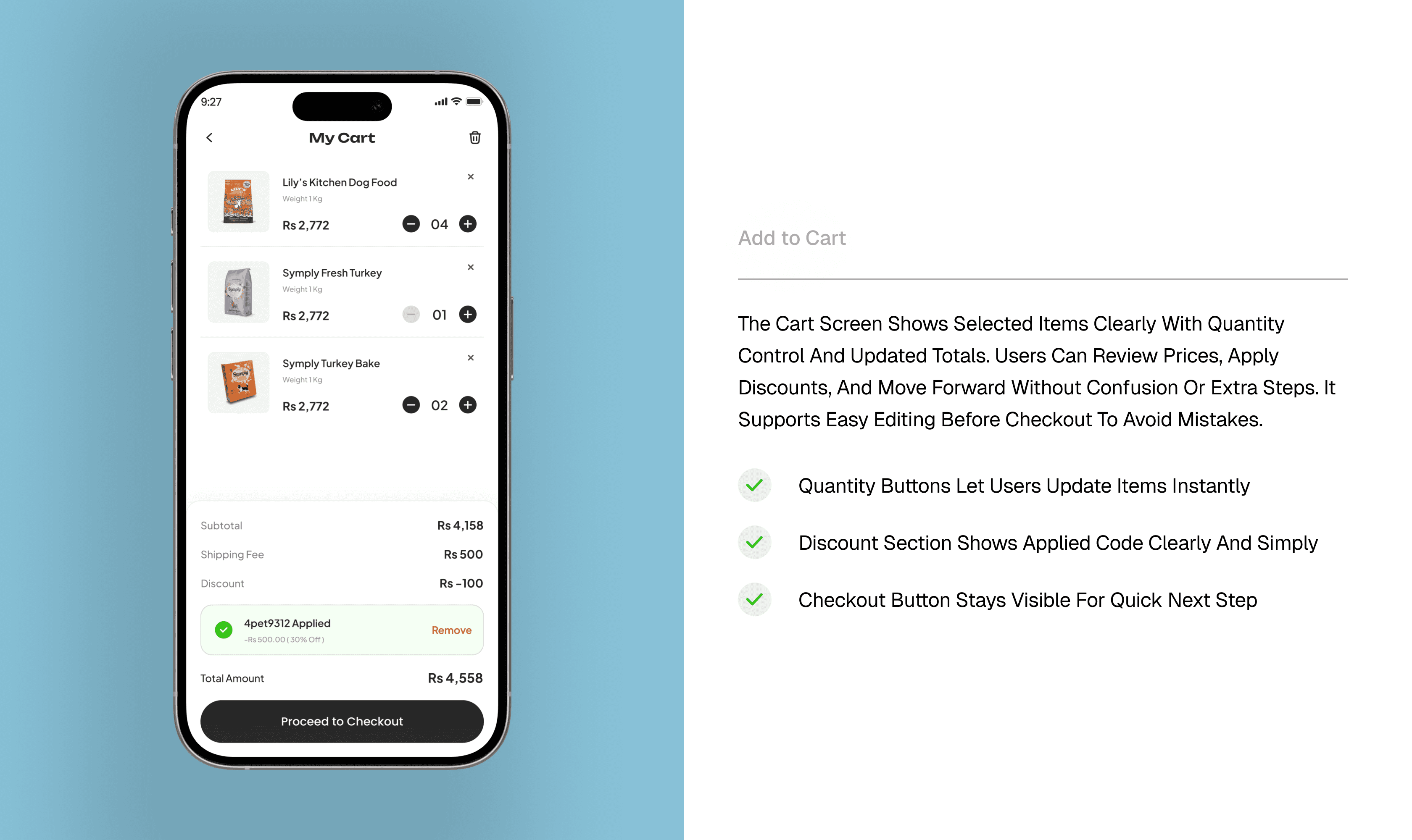 A complete pet-care shopping app designed to make browsing, reviewing, and purchasing pet food and accessories simple, fast, and enjoyable for every user